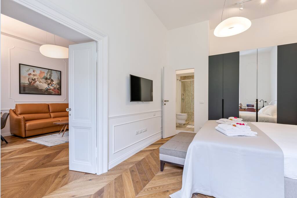 Nestled in the heart of Rome, within the historic district of Prati, this charming and elegant 70sqm apartment boasts a spacious bedroom with a king-sized bed, a contemporary and fully-equipped kitchen, a spacious living room with a convertible king-size sofa, and 2 full bathrooms. Complete with air conditioning in all the rooms and a washer it ensures optimal comfort during your stay. Immerse yourself by exploring the nearby Vatican City, Piazza Cavour,Piazza del Popolo,Castel Sant Angelo, Trevi Fountain, Spanish Steps, Piazza Navona, and Pantheon, all within walking distance of the apartment.
