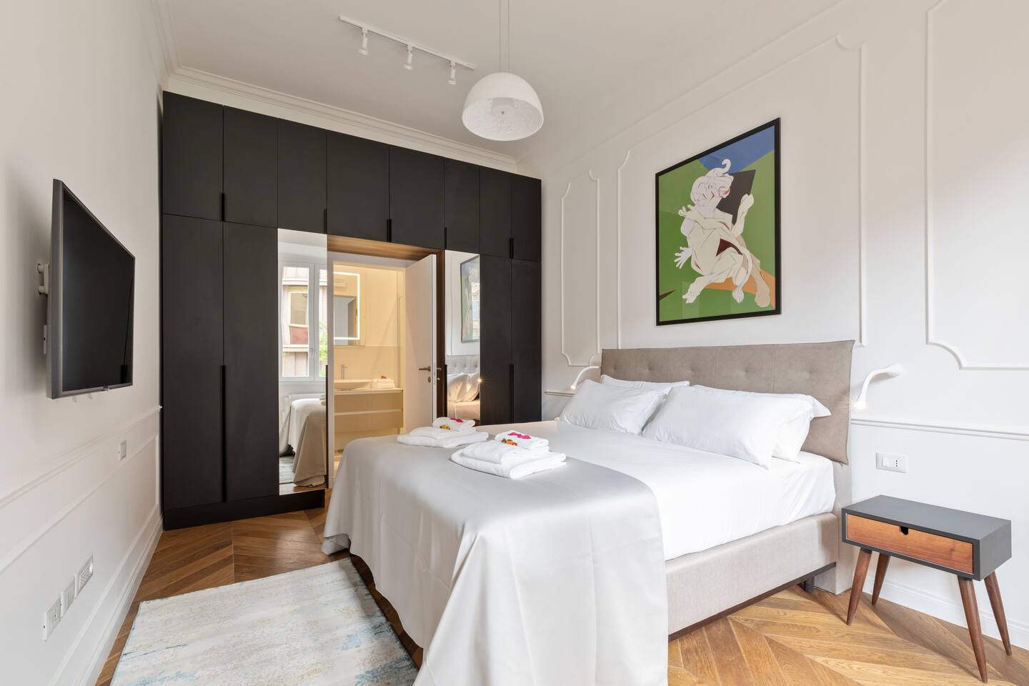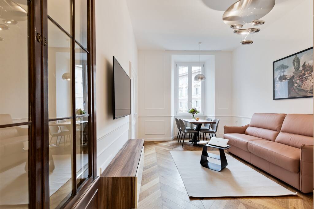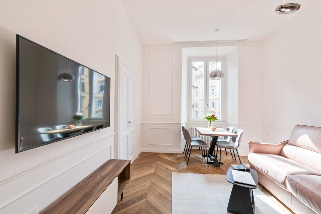 Step into your contemporary and chic 1-bedroom apartment, nestled in the vibrant heart of Rome! Spanning across a generous 65 square meters, abundant natural light, and utmost seclusion ensure a delightful stay tailored to your every need. Located along the banks of the Tiber, just a short walk from Piazza di Spagna, Piazza del Popolo, and Vatican City